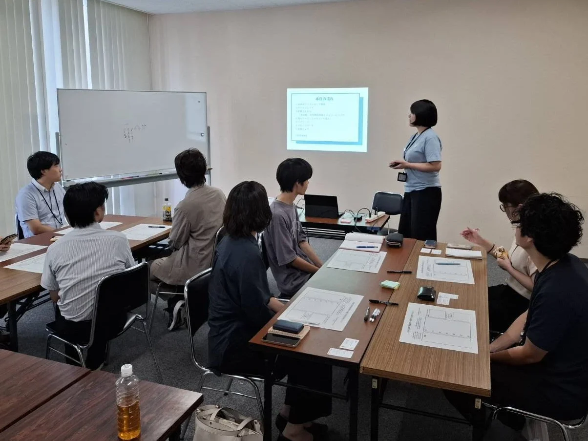 横尾さん主導で「10年後の理想の一週間」を語り合うワークショップを実践。大学での経験を活かした心理的安全性の高い場作りにより、活発な意見交換が実現しました。その後、外部講師を招いた事例学習を経て、9月には各自のアイデアから取り組む企画を一つに絞ります。今期は、万代シテイで開催される冬のクリスマスマーケットへの参画プロジェクトが立ち上がりました。